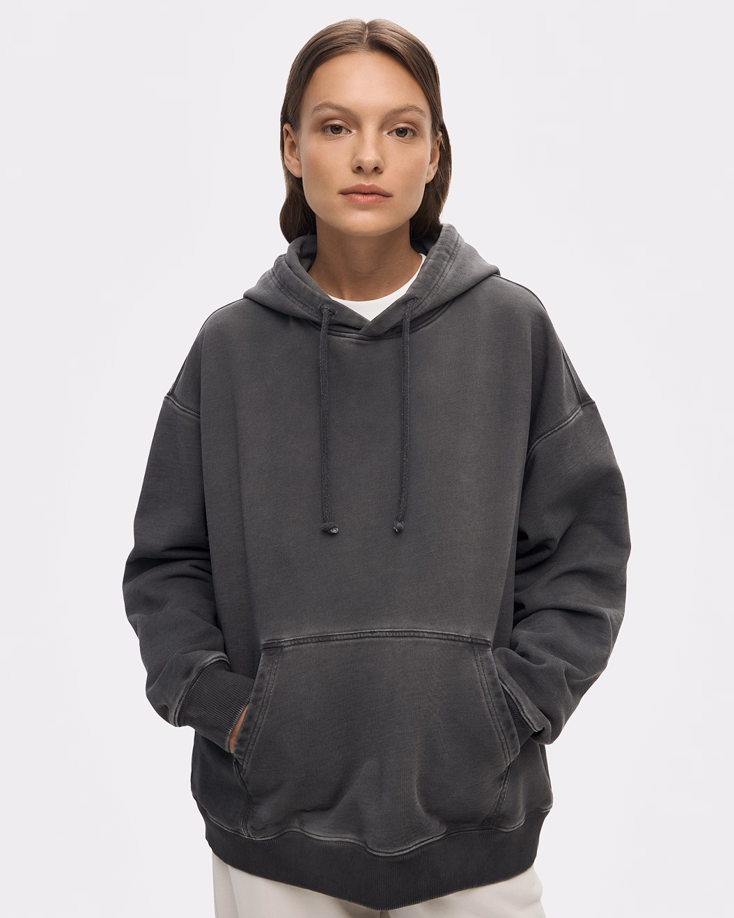 Основа — 100% хлопковый сверхплотный футер. Окрашивание в готовом виде придает ткани дополнительную мягкость и характерный винтажный эффект, сохраняя при этом ее превосходную форму