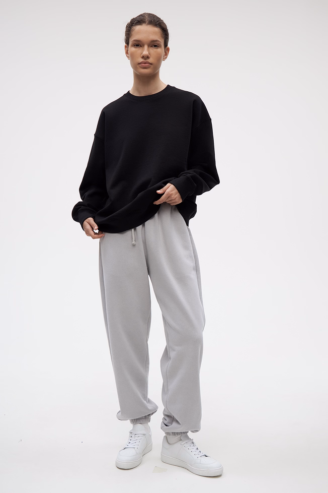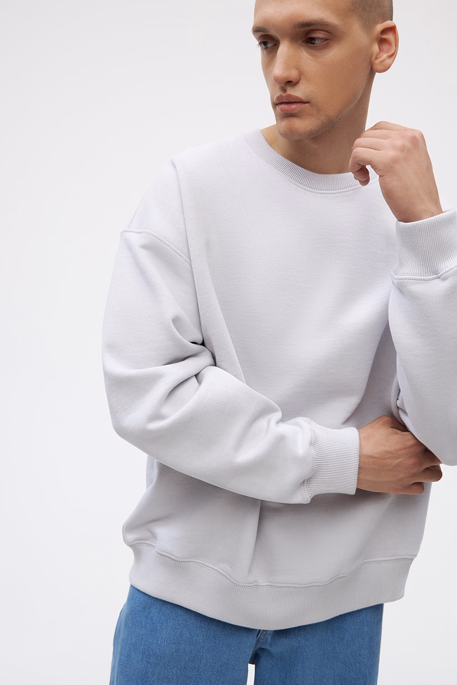 Мы используем сверхплотный футер 3-нитку 450г. Это тяжелый, премиальный материал, который создает четкий силуэт и превосходно держит форму. 100% хлопковый состав делает его максимально комфортным и дышащим