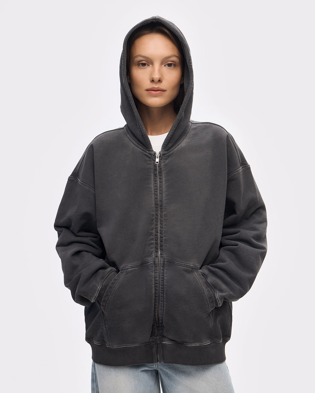 Основа — 100% хлопковый сверхплотный футер. Окрашивание в готовом виде придает ткани дополнительную мягкость и характерный винтажный эффект, сохраняя при этом ее превосходную форму